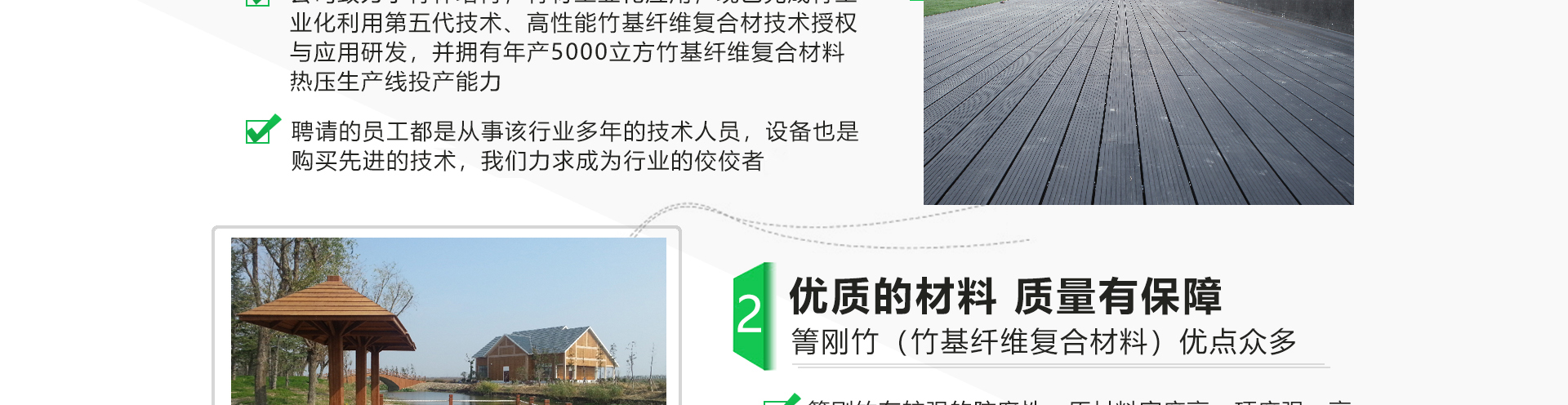 宣城宏宇竹业有限公司位于“华夏毛竹首镇”的安徽省宣城市泾县蔡村镇,公司致力于竹材工业化应用与研发,已完成竹工业化利用第五代技术-竹基纤维复合材技术应用研发,并获得2015年度国家科技进步奖二等奖。公司拥有行业幅面3850*1320mm的5400吨压力的20层热压机,可以直接压制3850*1180*52的坯板,具备年产10000立方米的生产能力。宏宇竹业以“领导竹材恒久价值”为己任,以匠心的工艺,锐意进取的管理团队打造一个产品多样化、市场多元化的科技型企业。公司从成立之初一直重视品牌建设,公司注册商标“箐刚“竹,致力打造户外竹材优异品牌,让宏宇竹业深入每一个消费者的心。